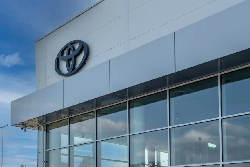 We are delighted to announce that another Toyota showroom has been built, with a façade made of our panels!