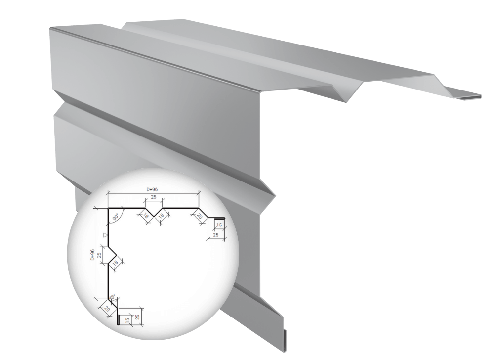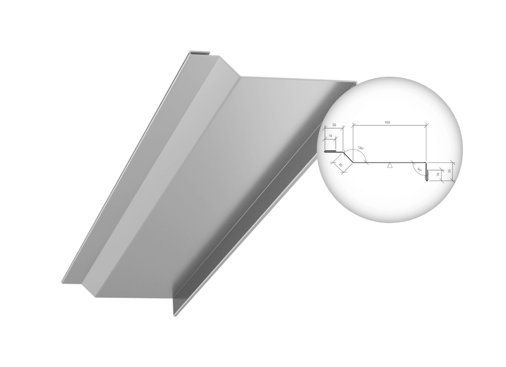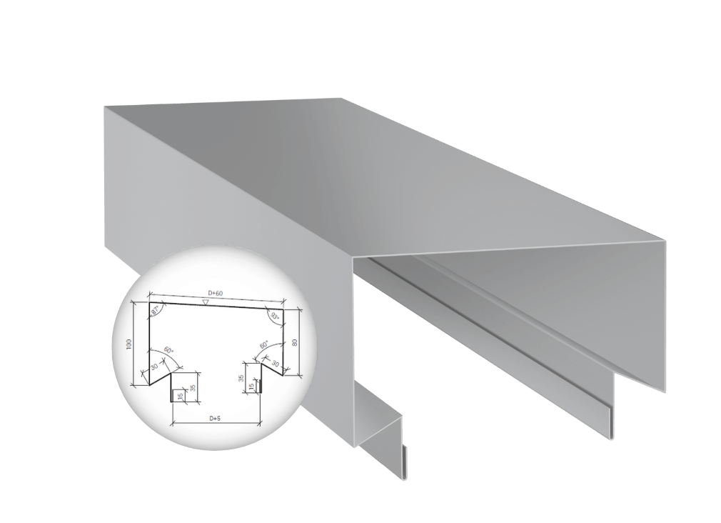 Flashings are a component of the light cladding system. In addition, they are also used as a standalone finishing element. Thanks to them, it is possible to combine and finish walls and other elements of construction made of sandwich panels. Flashings are made of galvanized sheet metal with 25 μm polyester coating of standard thickness 0.50, 0.63, 0.70, 0.75 mm and in lengths from 1.00 m to 6.00 m. Other lengths should be consulted with the manufacturer.
